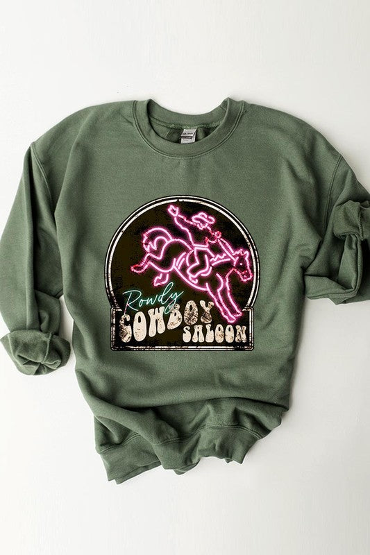 Cowboy Saloon Neon Sign Graphic Fleece Sweatshirts