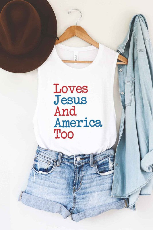 LOVES JESUS AND AMERICA TOO GRAPHIC MUSCLE TANK