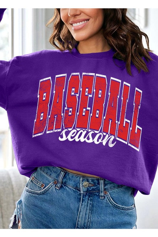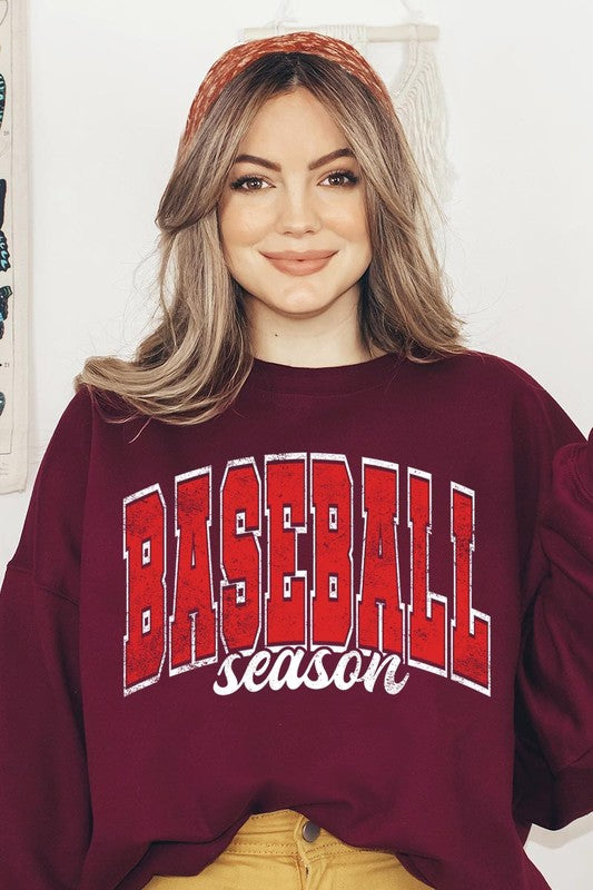 Baseball Season Oversized Graphic Fleece Sweatshirts.