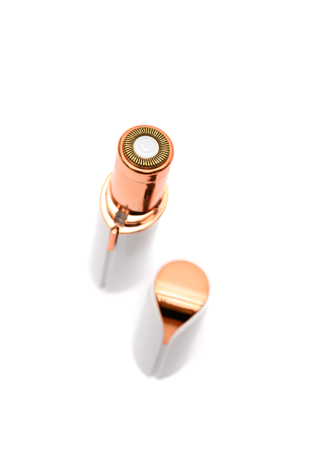 The Flawless Facial Hair Remover in white and rose gold has stainless steel blades and an LED light for precision. Use this beauty tool to instantly remove peach fuzz and hair from lips, chin, neck and cheeks, or use as an eyebrow shaper to maintain flawless brows between, or in place of, other hair removal treatments!